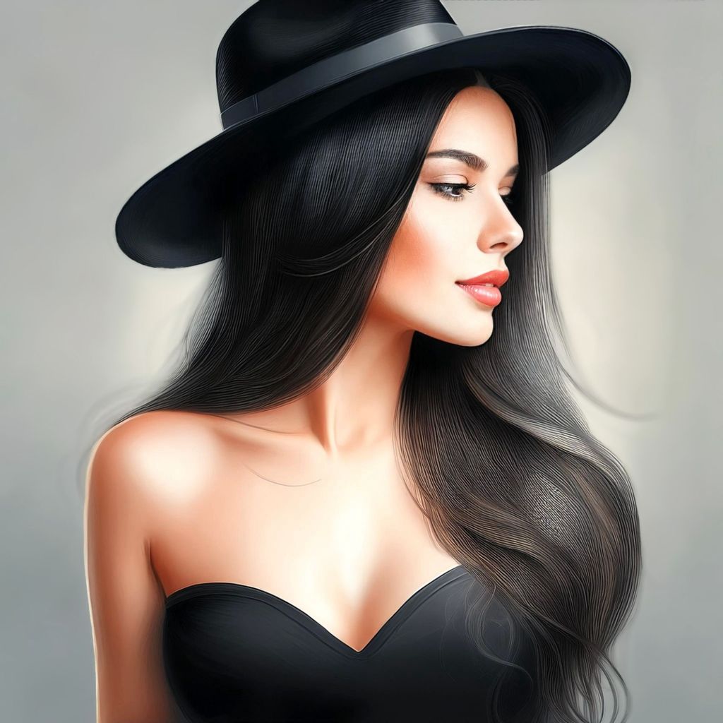 En su habitación terminó de ponerse las dos prendas que le faltaban a su atuendo, ese top negro ajustado con escote palabra de honor y el sombrero negro, bien colocado sobre su larga melena morena.