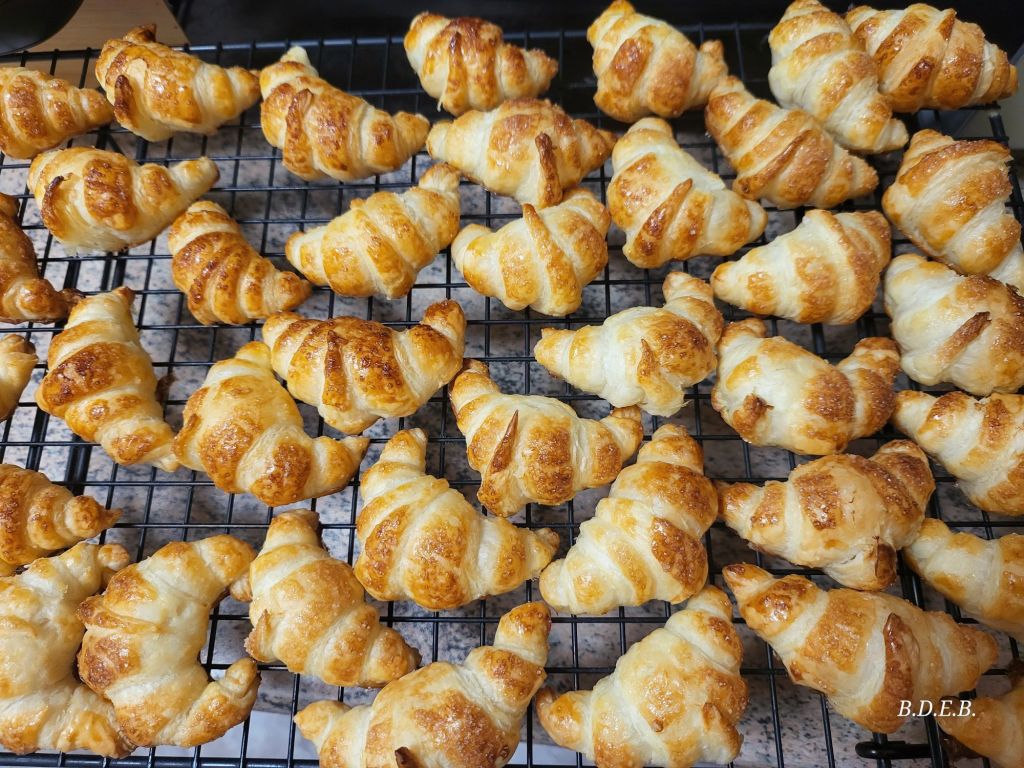 Ayer sin querer cometí un error con el chico, ofrecí unos pequeños croisants que le había comprado, pensando que no se los iba a comer y cuando fue a buscarlos, no los encontró, así que le prometí que hoy enmendaría mi error y no se los iba a comprar, se los prepararía yo con todo el cariño. Esta tarde me puse manos a la obra y ahí están, el contento me lo ha agradecido y yo feliz de haber arreglado ese pequeño fallo.