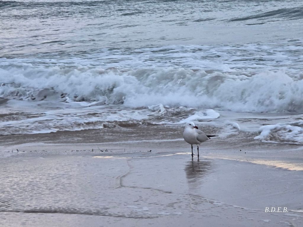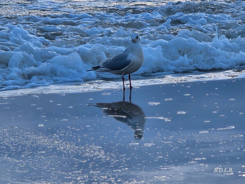 Mientras paseaba, me encontré con una gaviota que, ajena a la lucha del sol, se daba el primer baño del día, aunque solo las patitas, a estas horas el agua está aún muy fría.