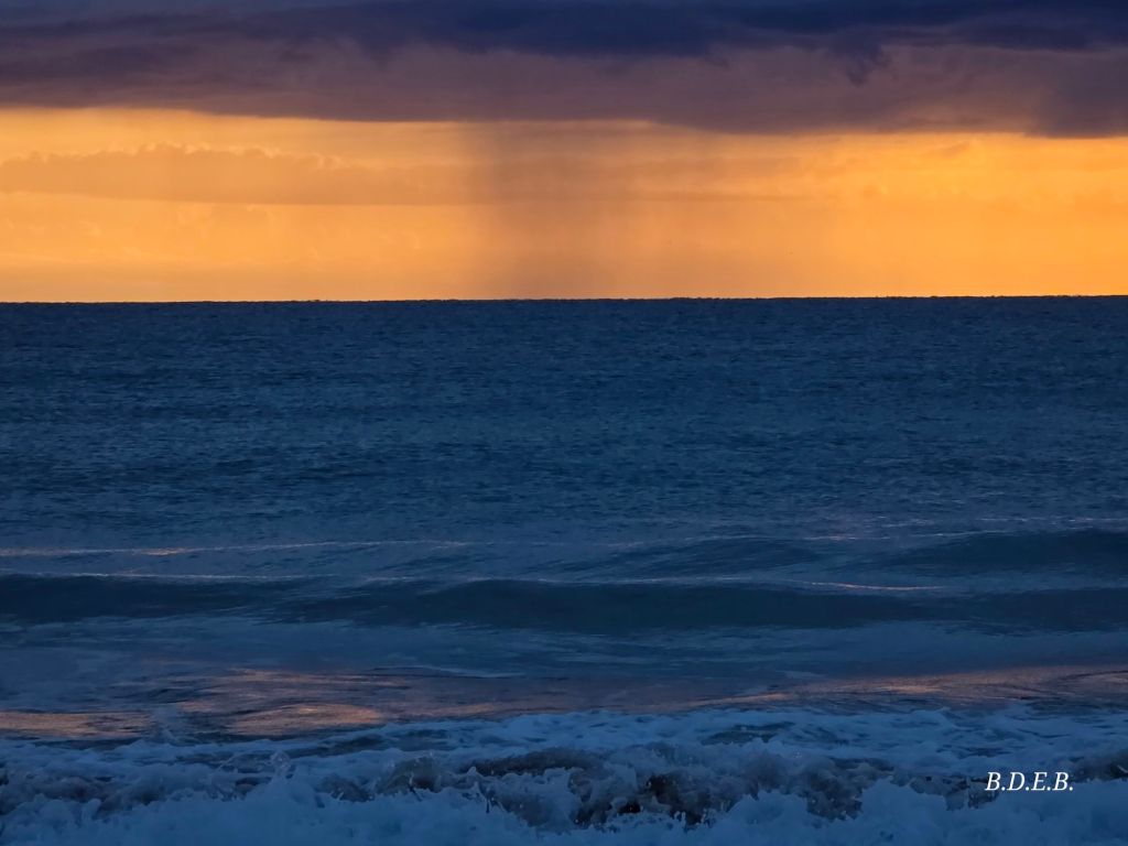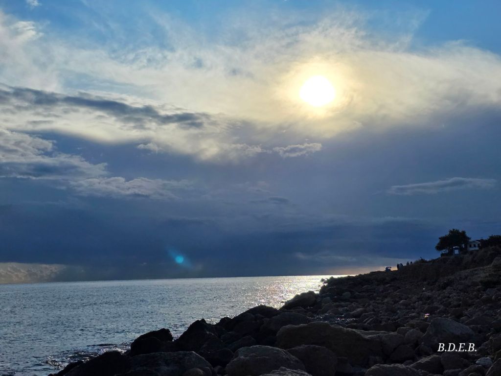 Hoy, cuando llegué al mar, el sol estaba librando una batalla con las nubes, él intentaba reflejarse en el mar y ellas se lo impedían formando una muralla, incluso en los sitios más despejados, había una cortina de lluvia a modo de barrotes impidiendo que él escapara.