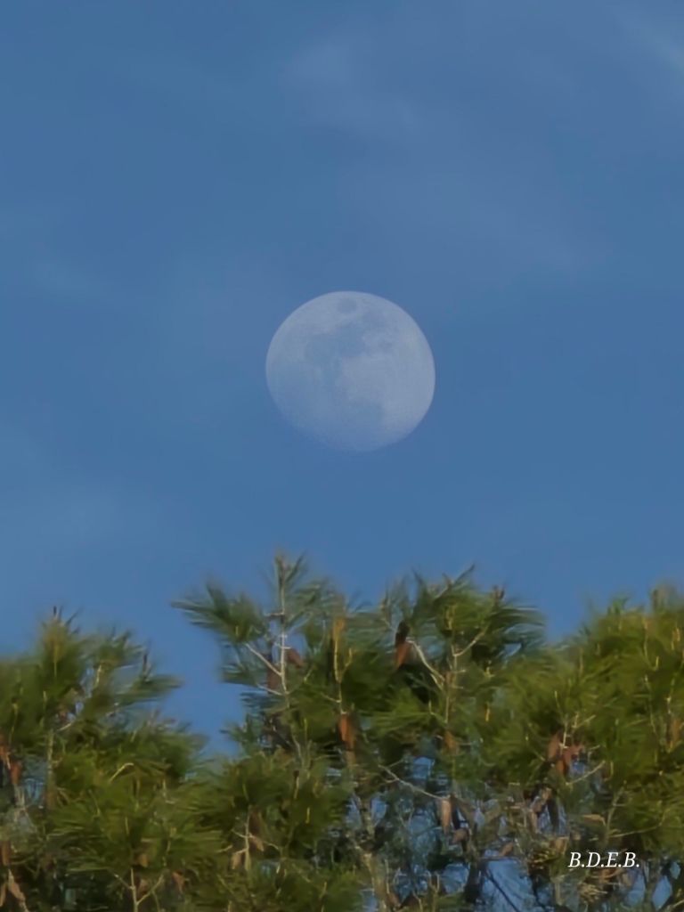 Aún es de día, es lo bueno que tiene este horario recién estrenado, pero ella ya está ahí, casi reposando en la copa del árbol. Muchos ni siquiera se habrán fijado, en lo cotidiano pocas veces lo hacemos, es como que ocurre todos los días y ya no llama la atención, pero ha sido lo primero que vi cuando salí del coche.