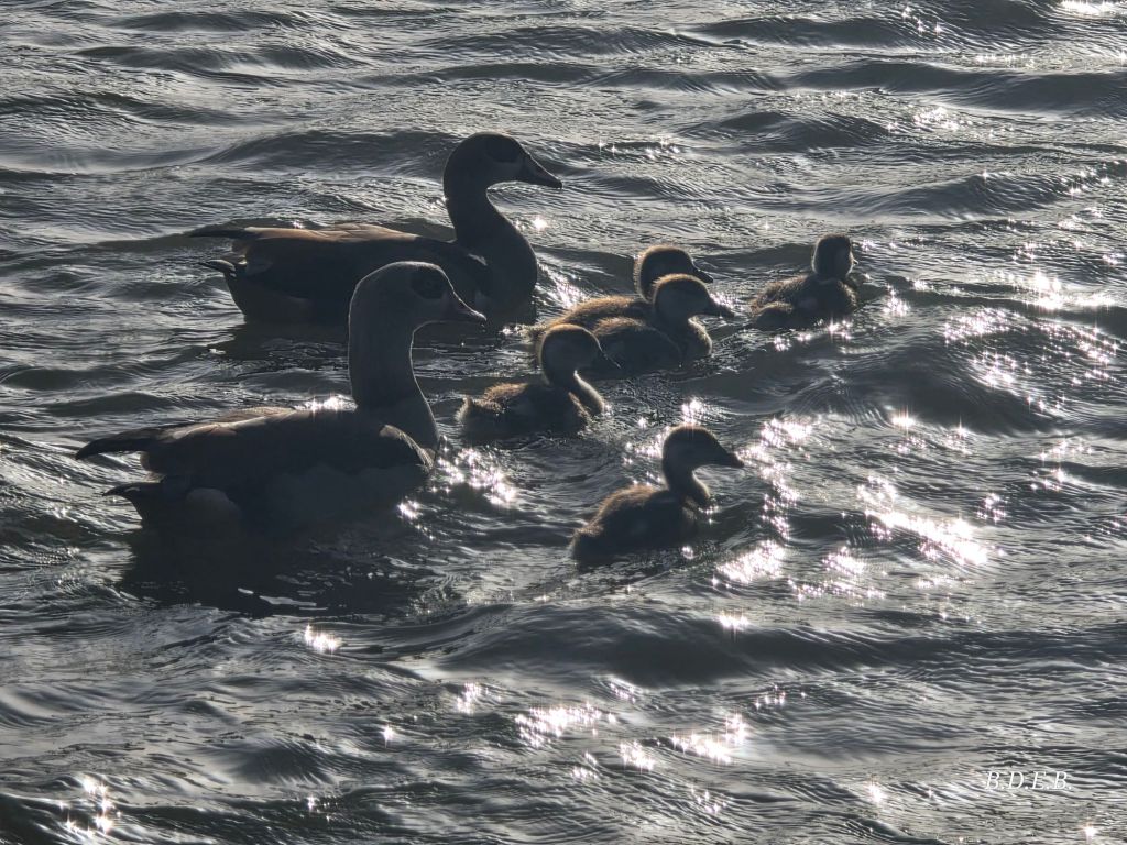 Un par de graznidos de mamá pata y todos los patitos se lanzan al agua junto a ella y papá pato.