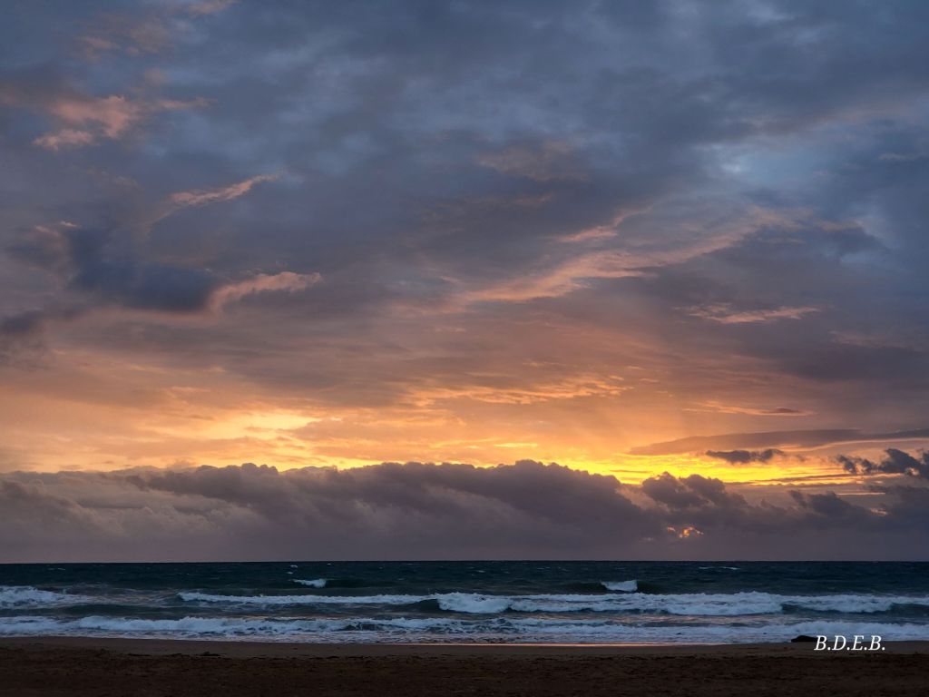Cuando los días están nublados, me gusta esos amaneceres en los que parece que el sol libra una batalla con las nubes para conseguir que sus rayos luzcan aunque sea por un poquito, con un poquito de suerte podemos contemplar unas imágenes maravillosas que no siempre puedo capturar igual de bonito que lo veo (también es cierto que llevo el móvil y no soy experta en sacar fotografías).