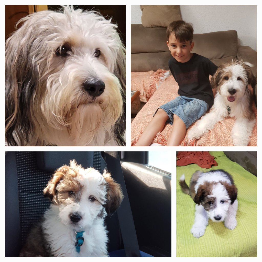 Por la tarde, cuando el pastor llegó de recoger al rebaño, aparecieron los padres junto al niño y justo abrió cómo una verja de dónde empezaron a salir correteando un montón de cachorros, el niño no sabía cuál de todos llevarse, al igual que sus padres, pero finalmente la madre vio un cachorro blanco con una mancha marrón en uno de los ojos y le dijo-¿te gusta este? ¿quieres que nos lo llevemos? El niño asintió y al momento ya tenía el cachorro en brazos. Los padres lo miraban asombrados y felices de que hubiera superado el miedo y sobre todo de tener un nuevo miembro en la familia.